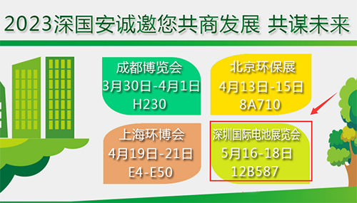 深國安2023上半年參展計劃安排,3月打卡第一站成都博覽會,4月打卡第二站北京環(huán)保展,4月打卡第三站上海環(huán)博會。屆時重磅新品閃亮登場,敬請期待。歡迎新老客戶前來現(xiàn)場洽談...