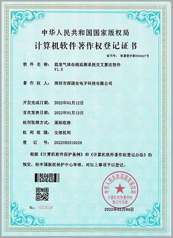 溫室氣體在線監測系統交叉算法專利證書
