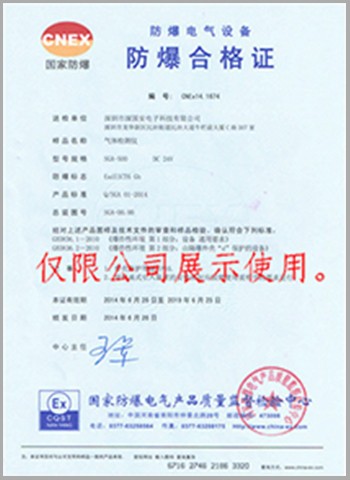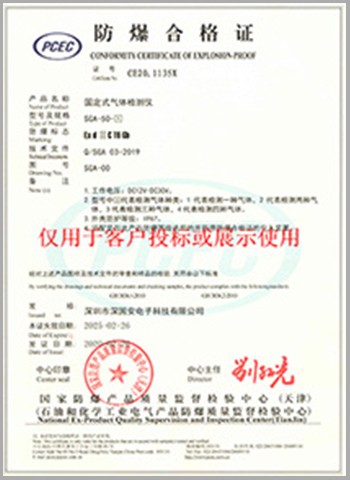 固定式氣體檢測儀防爆合格證