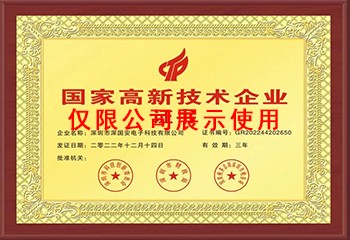 國家高新技術企業證書