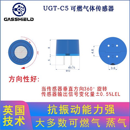 英國氣盾GASSHIELD公司研發(fā)的一款UGT-C5可燃傳感器,產(chǎn)品使用壽命設(shè)計(jì)標(biāo)準(zhǔn)5年,精確度3%范圍內(nèi),符合新國標(biāo)要求。UGT-C5可燃傳感器通過催化材料的改進(jìn)和技術(shù)創(chuàng)新,開發(fā)出了具有跨時(shí)代意義的智能傳感產(chǎn)品,與市場上所有催化燃燒可燃傳感器相比,UGT-C5可燃傳感器具有高精度、長壽命和超穩(wěn)定性,在抗中毒測試中的突出表現(xiàn)令人印象深刻。