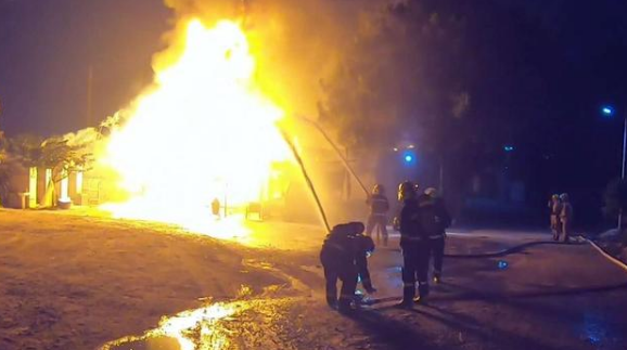隨后防員立即利用泡沫對明火進行覆蓋,并用噴霧水對鄰近房屋進行冷卻。之后組織近戰撲救,20時58分現場明火撲滅。消防持續噴水防止復燃,最終確認現場無人員被困,無復燃危險。